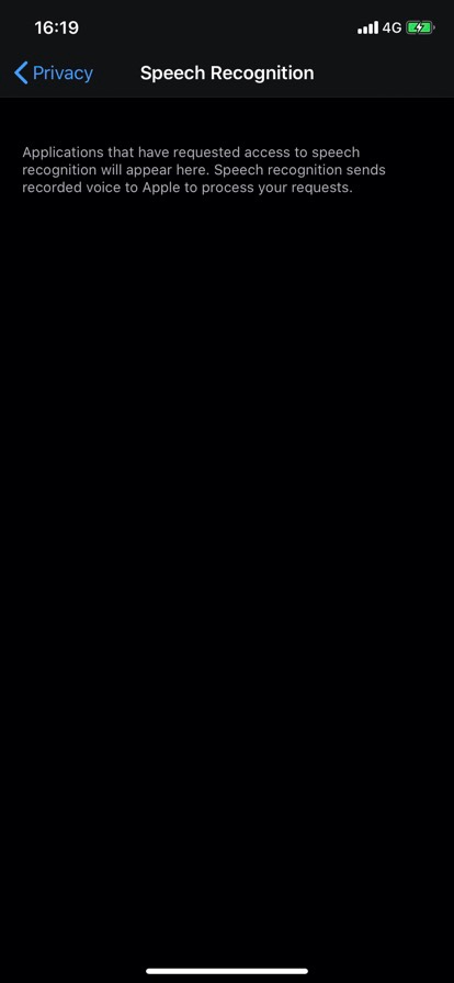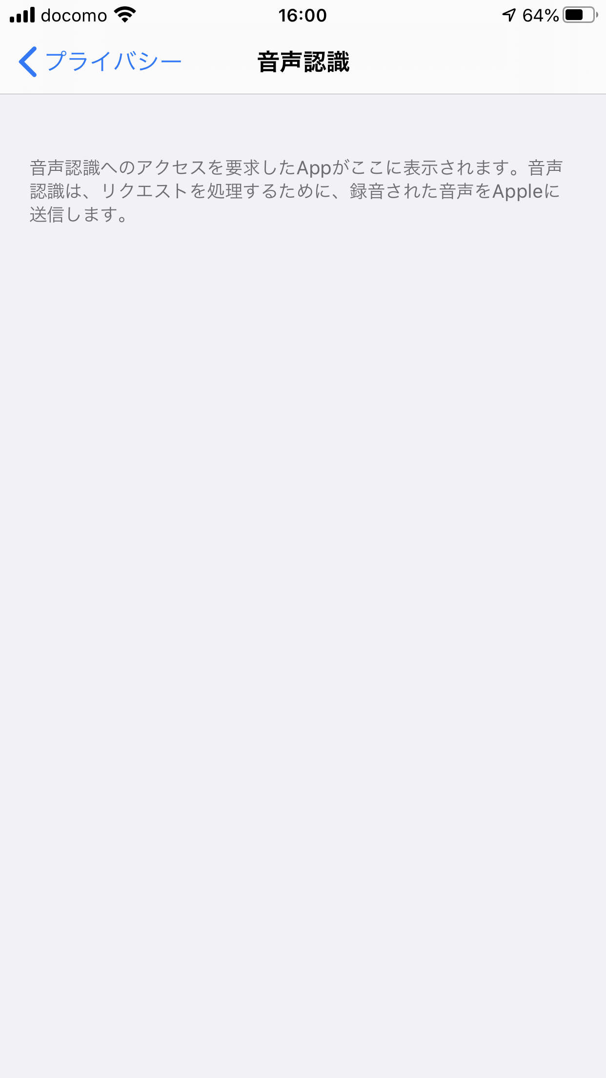 設定>プライバシー>音声認識(Speech Recognition)でしょうか。 そこには私のiPhoneにも何も表示されないですね。