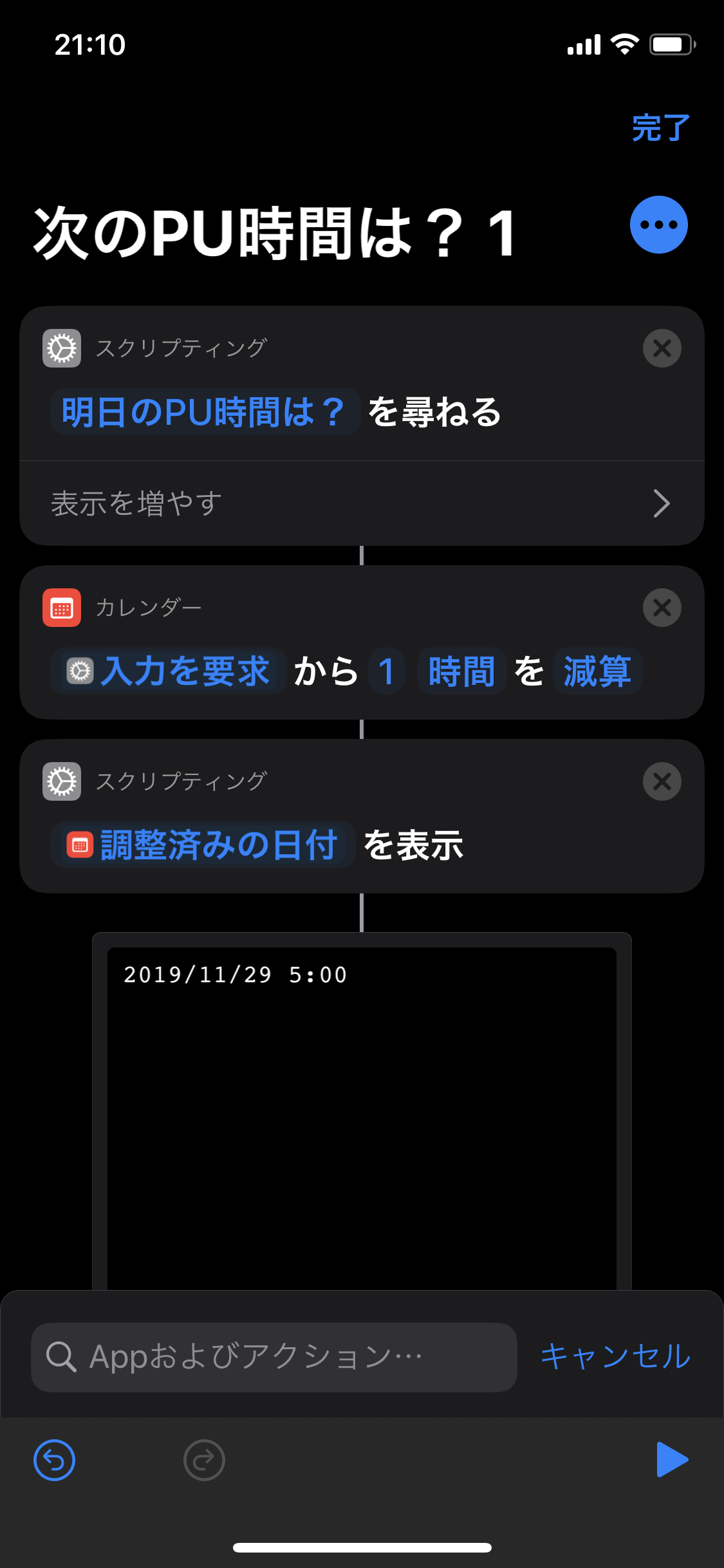 ショートカットアプリを使って、入力した時間に対して、1時間前、30分前など複数のアラームが自動で作られるように設定しようとしています。
