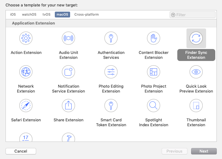 Xcodeで、Finder Sync Extensionを作れば速いです。