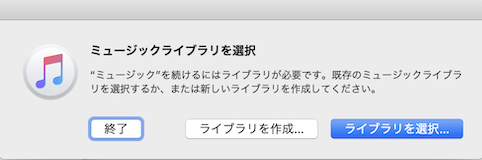 Macにデータをコピーするまでは終わりましたが、optionキーを押しながら ミュージックappを開いても「ライブラリを選択」が表示されません。