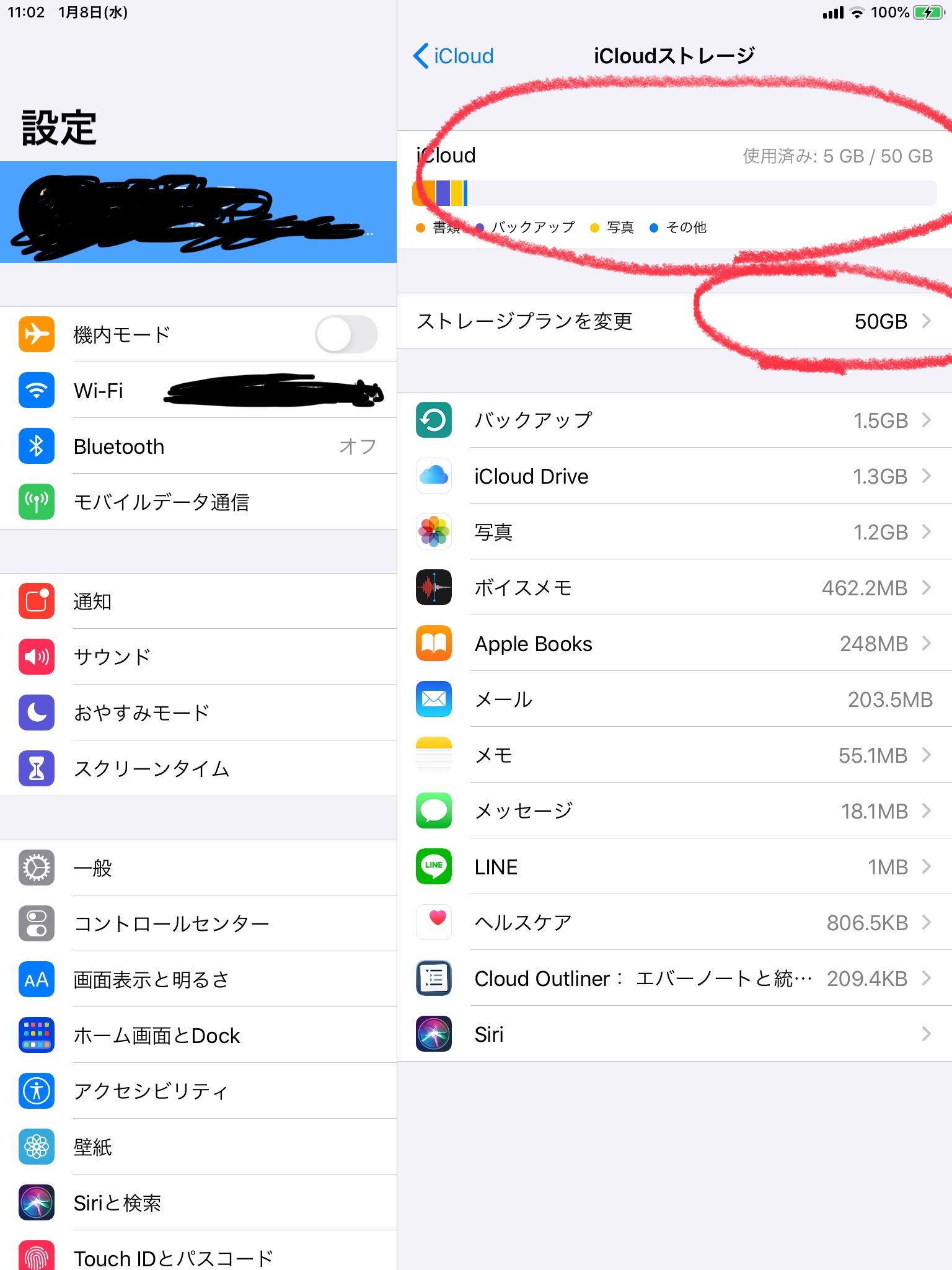 50Gのプランにアップデートしたにも関わらず、iCloud Driveでは容量が増えているように見えません。