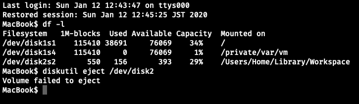 ここにコマンドのdiskutil eject/dev/disk2とタイプインすれば良いのですか?