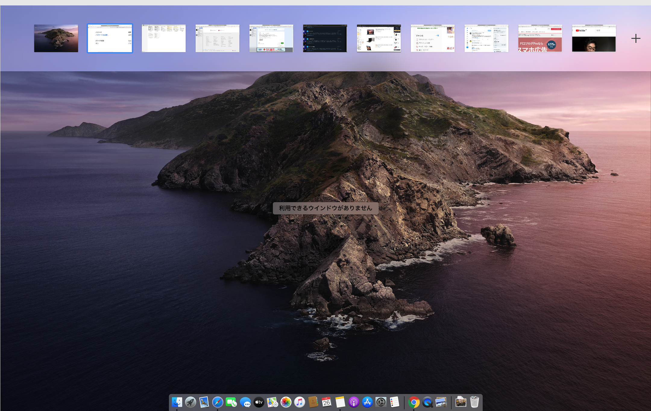 現在選択しているデスクトップに属するウィンドウがないので「利用できるウィンドウがありません」ということになっているのです。