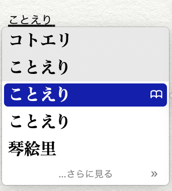 ライブ変換時に第一候補に上がってくる、カーソルが当たっている「ことえり」は末尾に半角スペースが挿入されています。