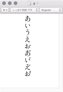 「しっぽり明朝」というフォントを利用して縦書きの文章を書いています。