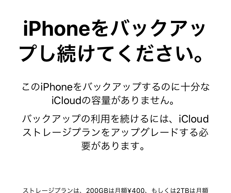 → 有料の iCloud ストレージプランにアップグレードしたり