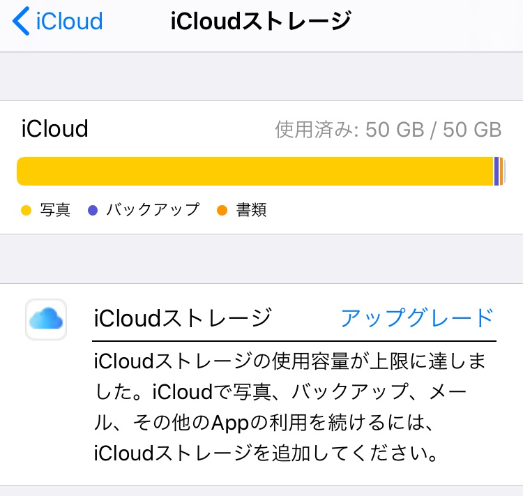 50 GBのiCloudストレージの殆どが写真のデータですね。 こちらのサポートを参考に、写真データを整理したり、バックアップをとった後に、削除してください。 それができない場合は、iCloudストレージを200 GBにアップグレードですかね。