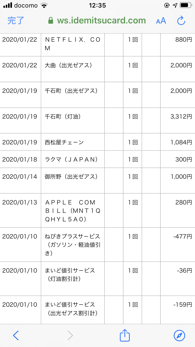 領収書メールは2019/11〜2020/1/nnの間は支払いがあっても届いていません。