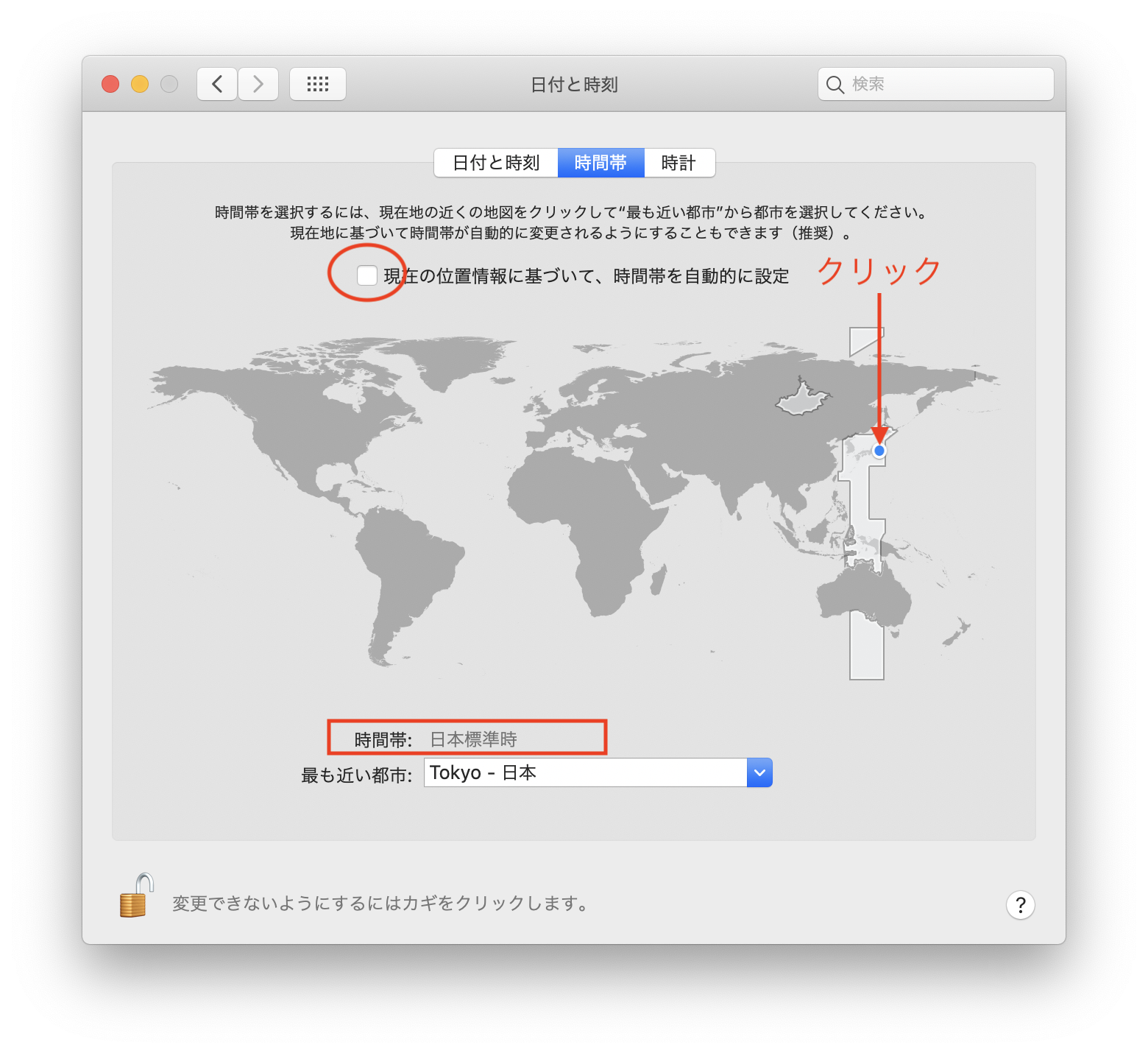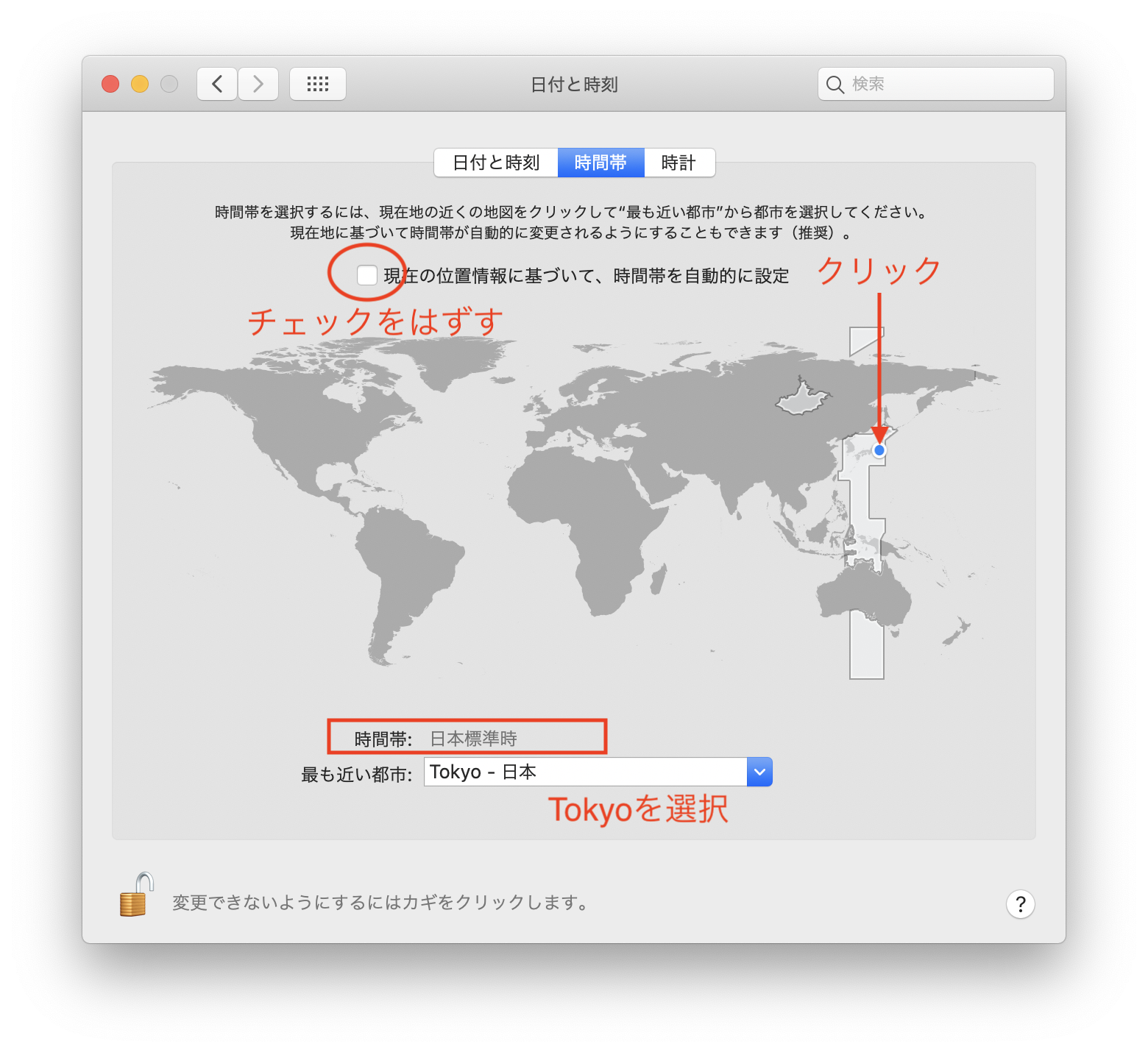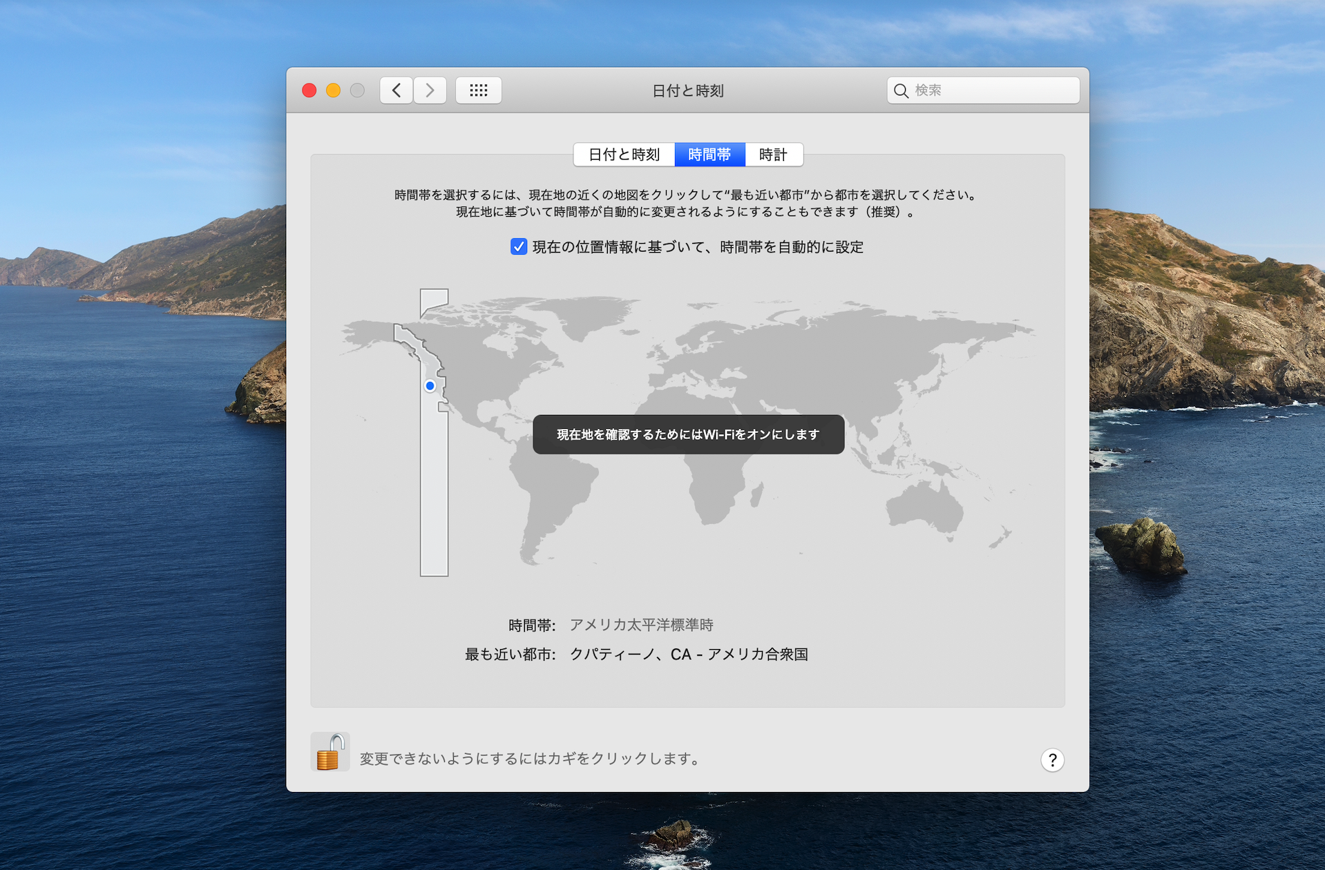 2。日付と時刻を自動的に設定のところをアメリカからアジアへ変更したが変更できなかったので、