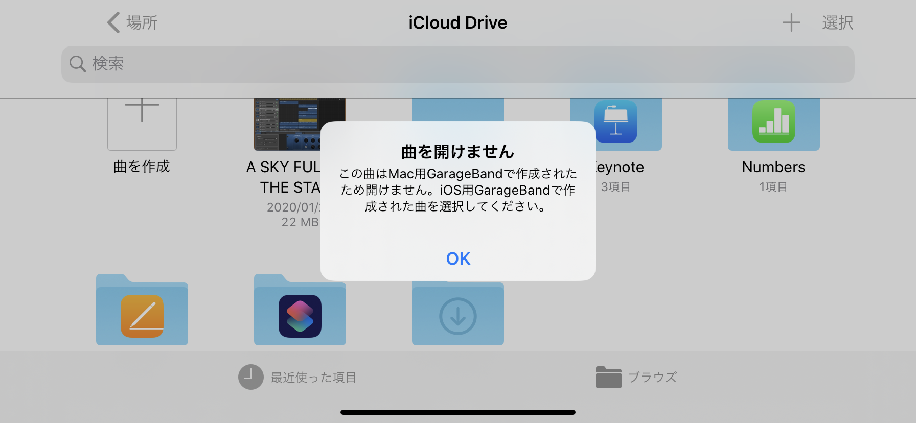 Macで作ったGarage bandの曲がiphoneで開きません。