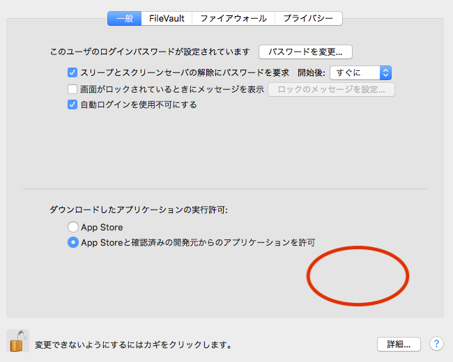 セキュリティとプライバシー内のアプリケーションを許可するボタンが無くなりました。