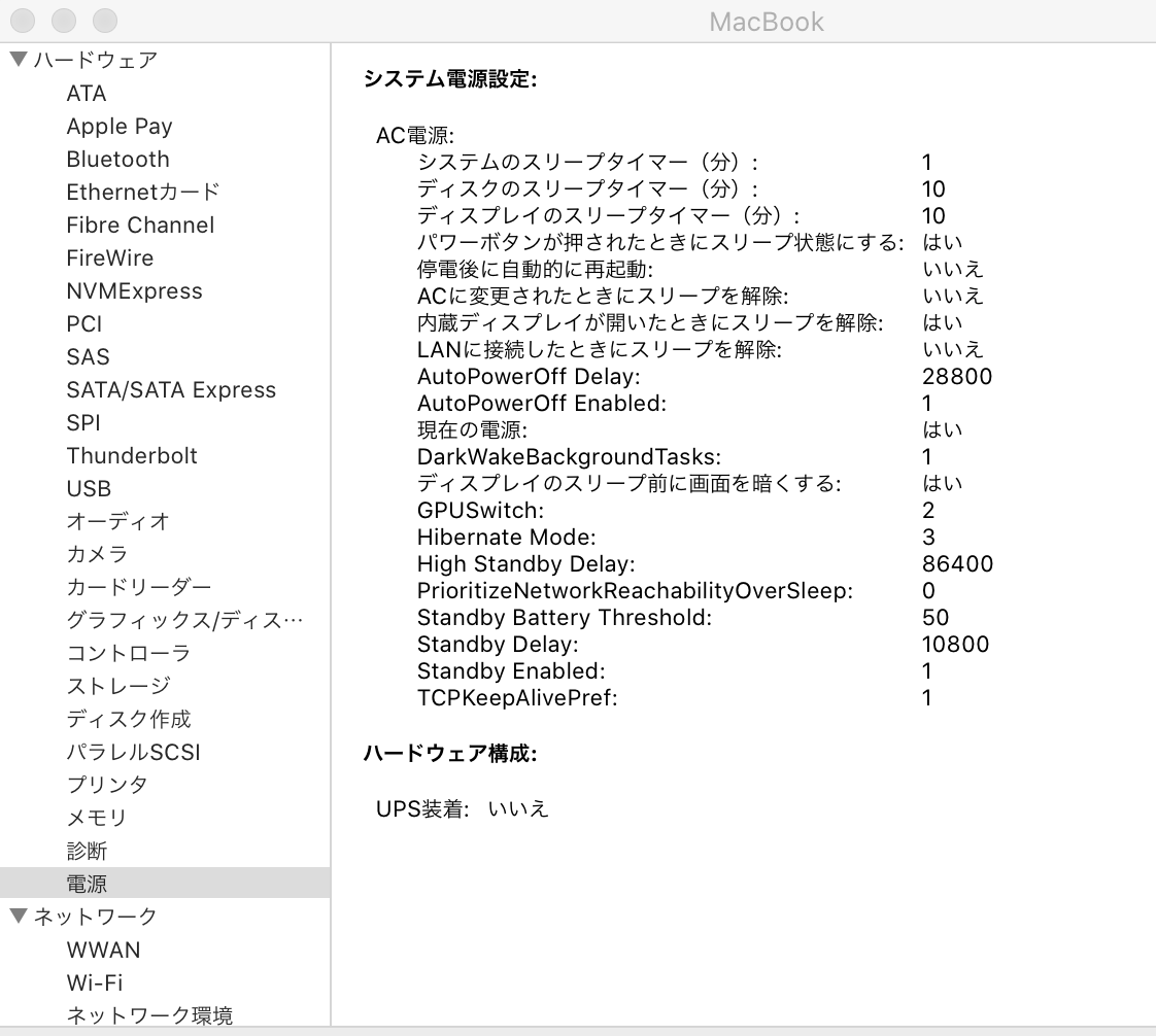 また、「システム情報」→「電源」を見ても、バッテリー情報の欄がなく、充放電回数などの情報が分からず困っています(システム電源設定以降は表示されます)。