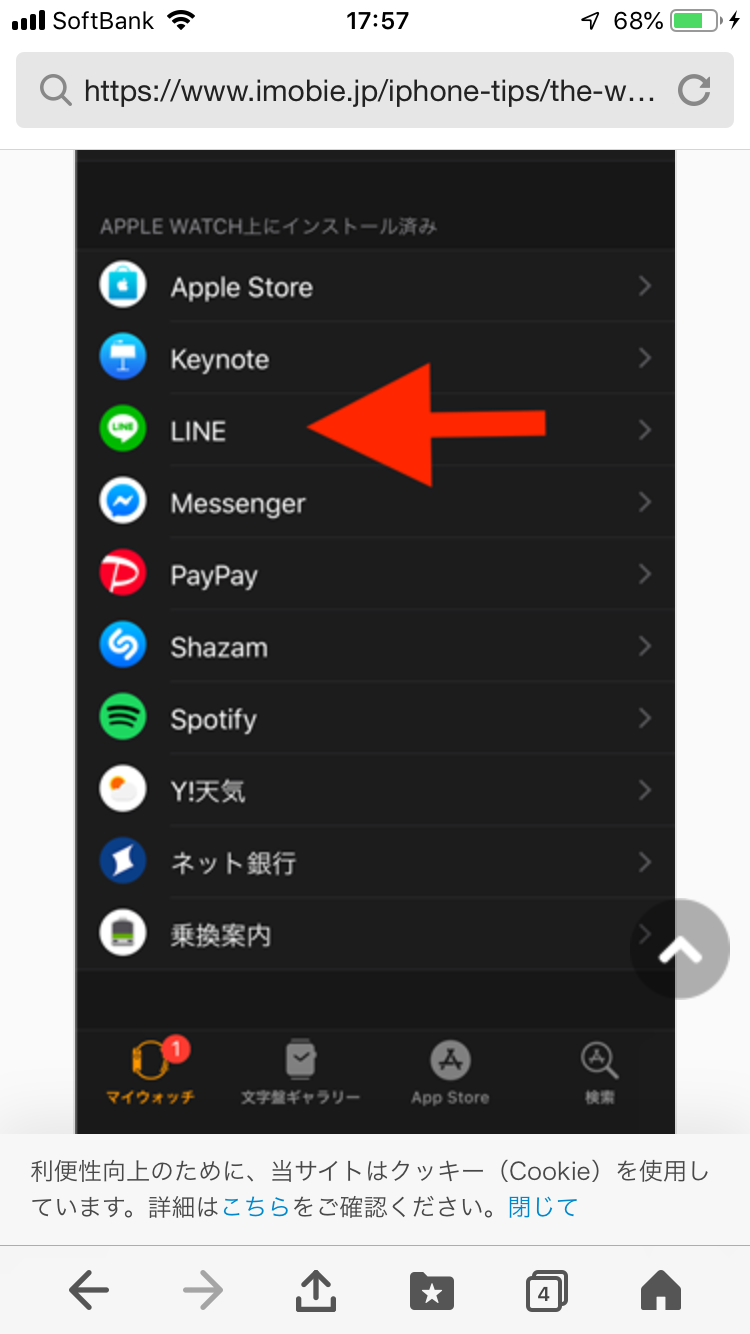 シリーズ4使用してますが、LINEが届くとお知らせ、返信できますがコンプリケーションにLINEが無く、こちらからLINEができません。