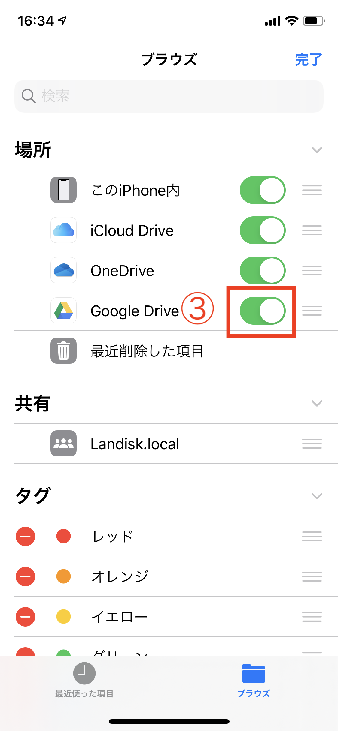 >■ファイルアプリでGoogle Driveを表示できますか?