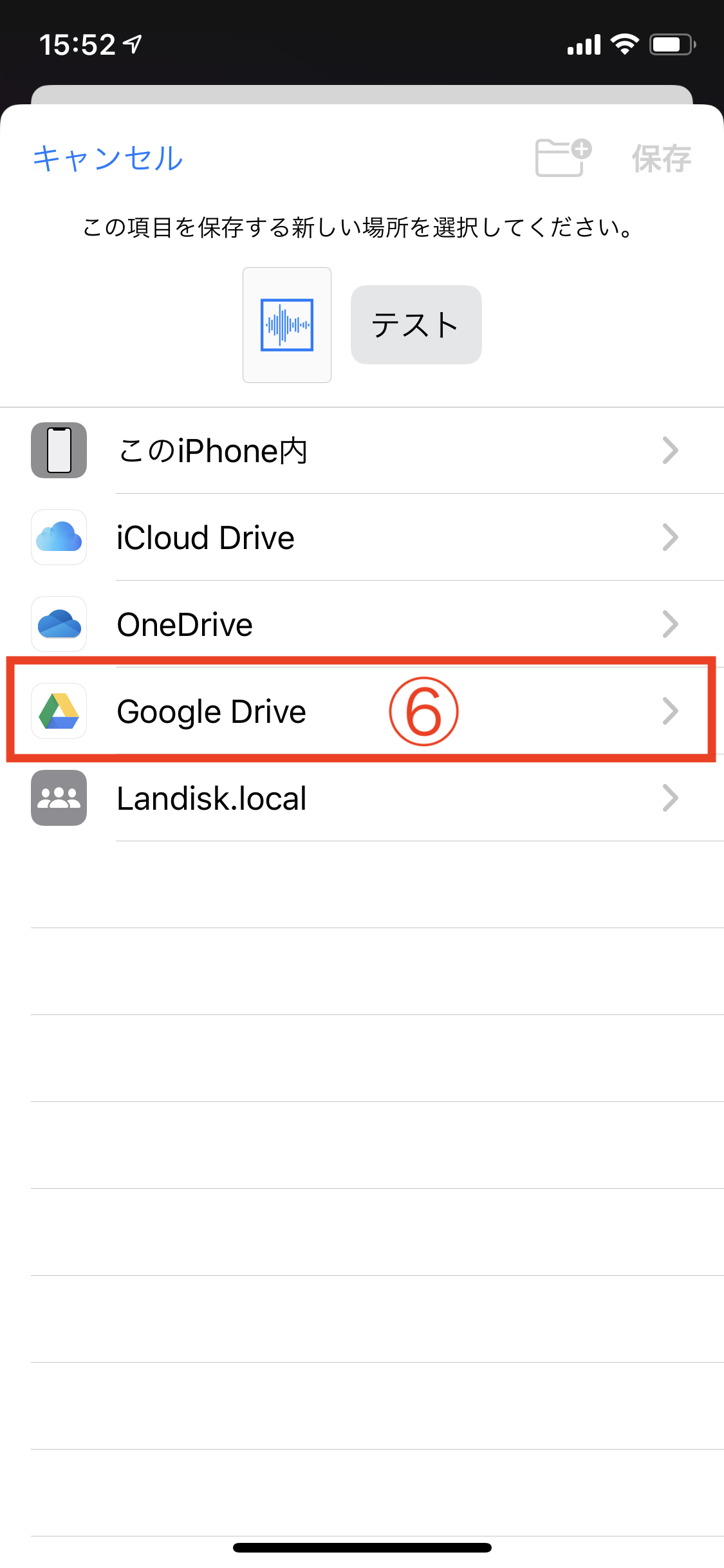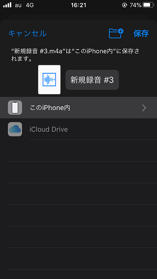 ボイスアプリから直接ファイルアプリのGoogleドライブへ保存できます。