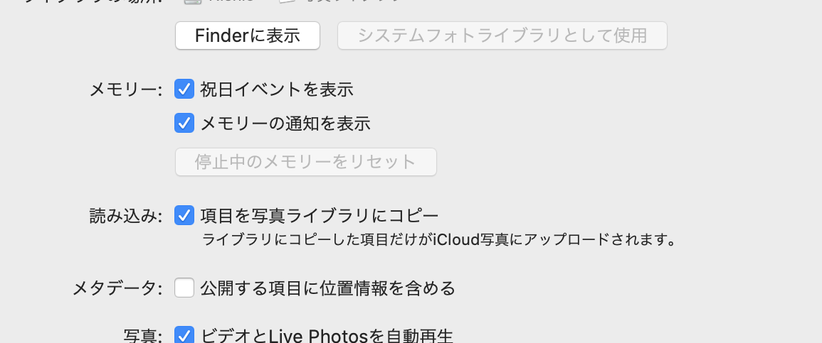 写真App環境設定の、システムフォトライブラリととして使用関連で不整合が起きていたようで