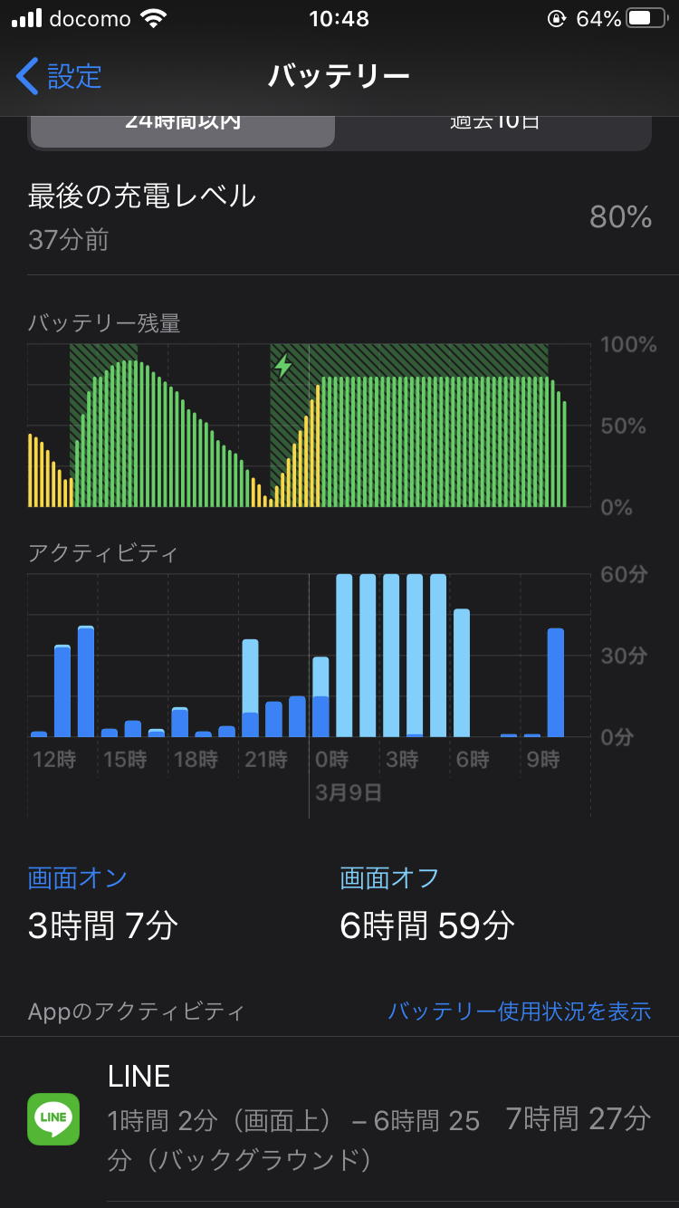 LINEが充電くっているので、バックグラウンド更新も止めてみましたが、変わりませんでした。