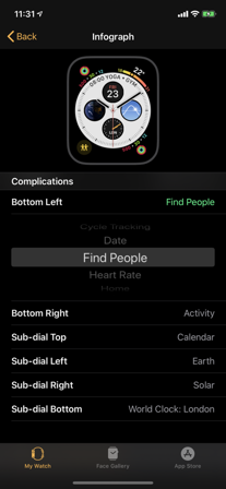 文字盤の種類に依存して、登録できるコンプリケーションの種類が決まっています。 これについては、私も不満があります。