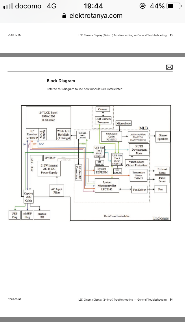 Apple 24インチ LED Cinema Display (A1267)を入手して使おうとしているのですが、ディスプレイ側から音が出ません。