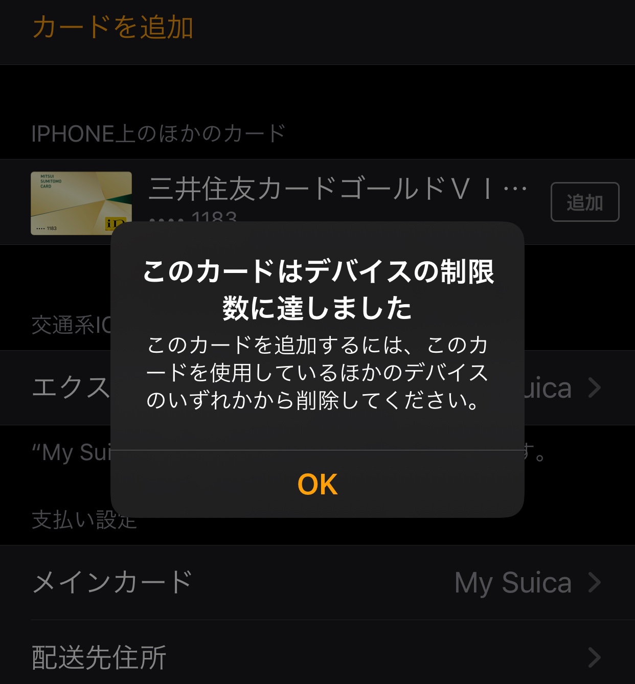 ウォッチを新しく購入し、今まで使っていたウォッチのデータをを削除したのに、クレジットカードをウォッチに登録しようとすると、このカードは制限数に達しましたとエラーになる。
