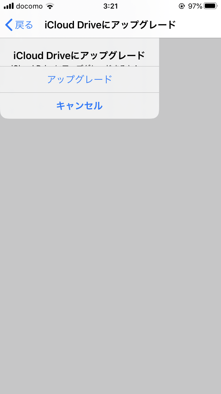 スクリーンショットの画像では、『iCloud Driveにアップグレード』とあって、その下の表示が見えません。 何が書いてありますか?