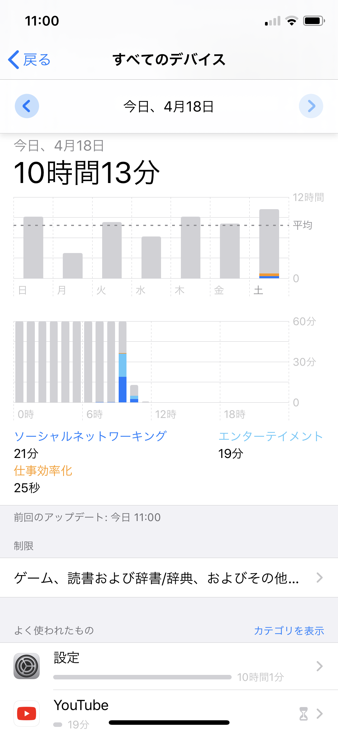 スクリーンタイムを見ると寝ている間もずっと設定が使われているんですが原因と直し方をおしえてください