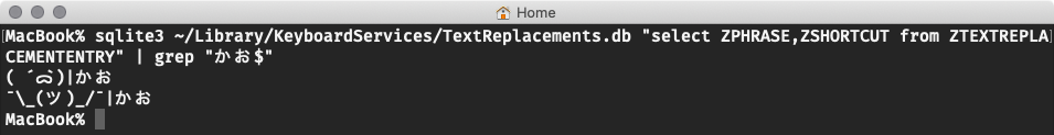 Catalinaのユーザー辞書(キーボード→テキスト)は、sqlite3です。
