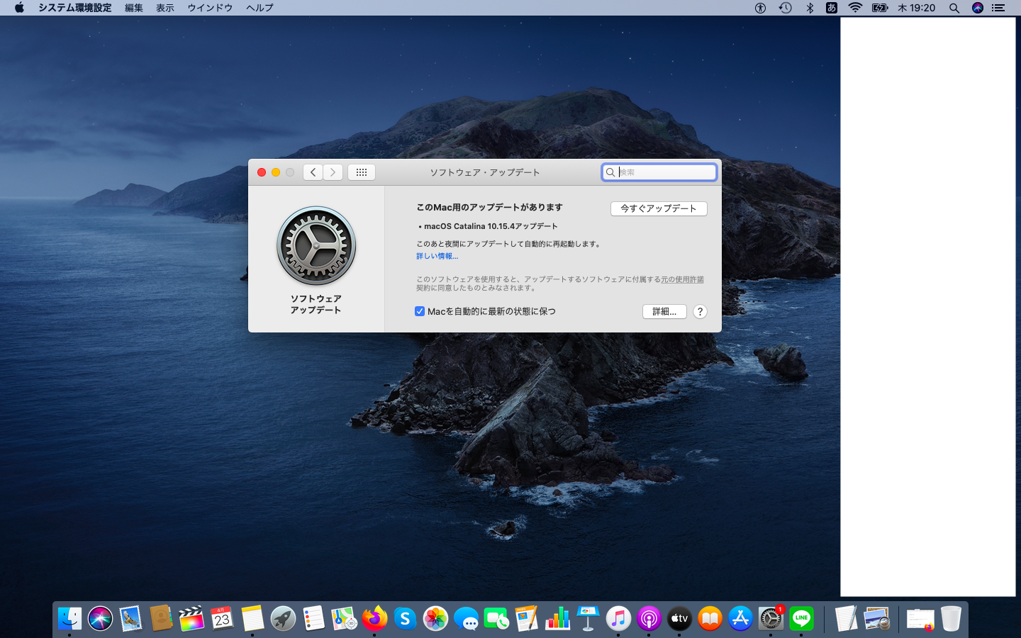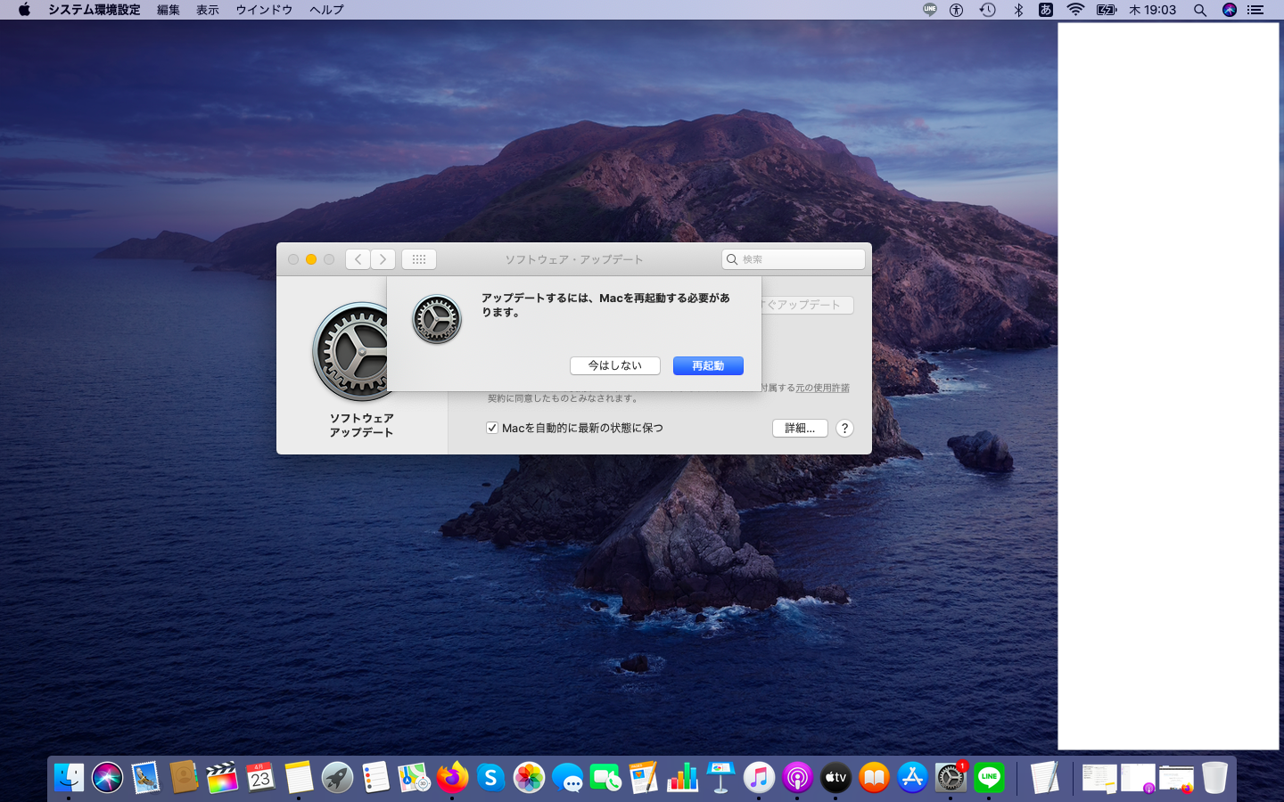 OS10.15.4をアップデートしたいのですが、再起動しても何の変化も無くまた同じ画面で今すぐアップデートをクリックしてもまた同じ事の繰返しです。ご回答ください。宜しくお願い致します。