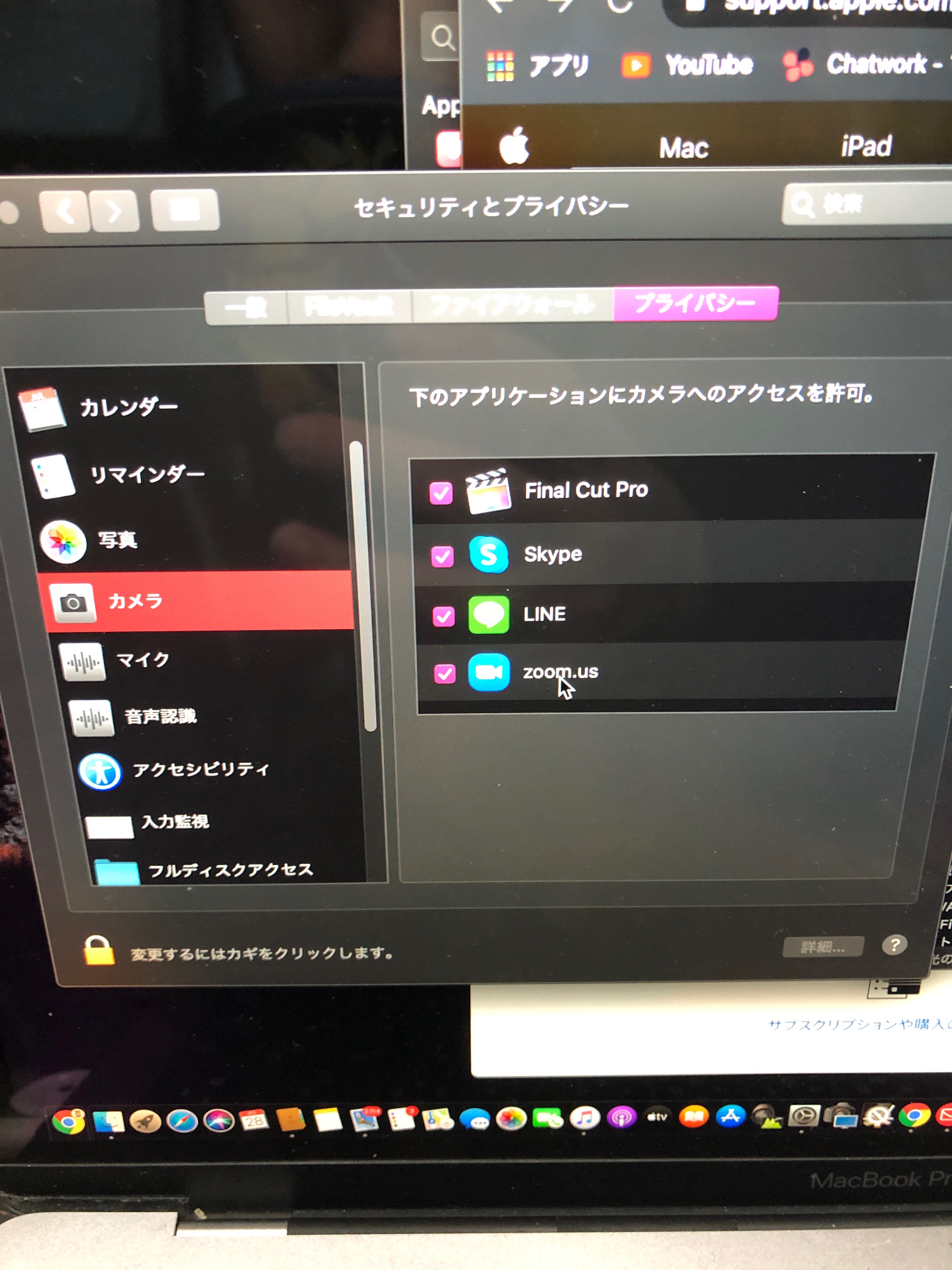 Mac Book Proのどのアプリでもカメラが起動しません。