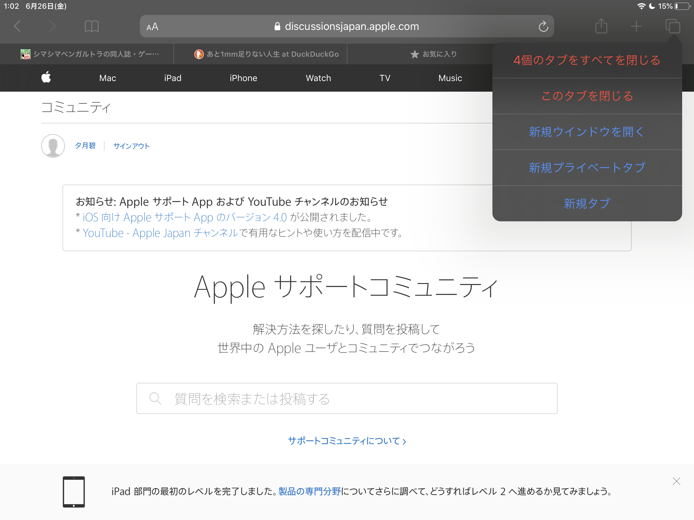 iPad OS 13で、Safariのタブが勝手に消える事があり困っています。すべてのタフではなく、一部のタブが消えるため、毎回履歴から開いていたタブを探して開き直しています。これが非常に手間がかかり面倒くさいです。
