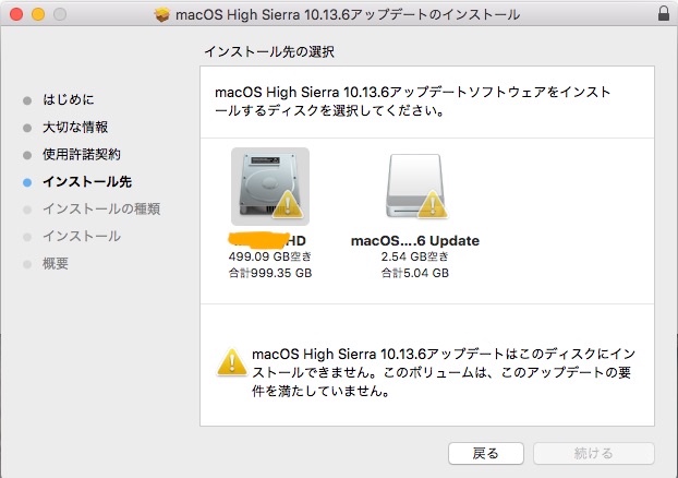 iMacにhigh sierra 統合アップデートをかけようとしましたが、うちのiMacが古いせいか、