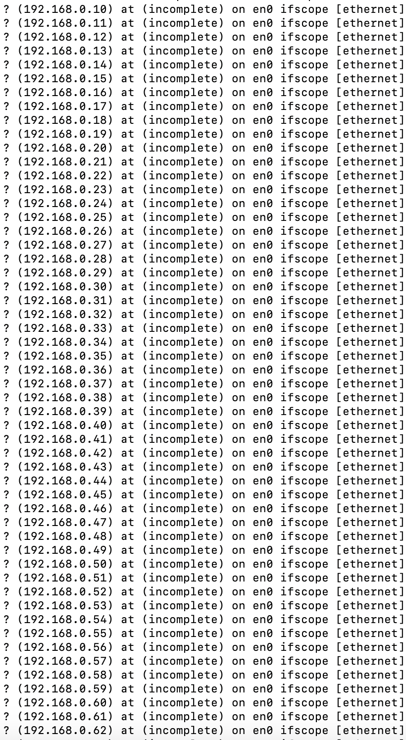 arp -aコマンドをしたら、このような表示が255まで続きました。