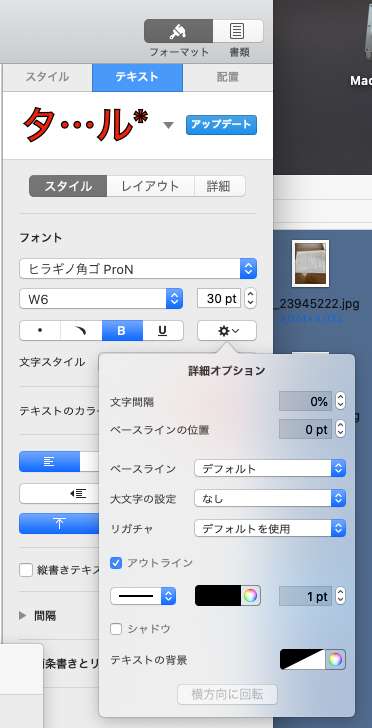 そこでネットで調べたところ、Pagesのアウトライン機能?のようなものが出てきたので、ツールバーにその機能を探したのですが、カスタマイズにも見当たりませんでした。