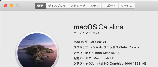 なお、Mac miniのハードは最小構成のままで、OSはHigh Sierraです(アップグレードの節はこのページでお世話になりました)