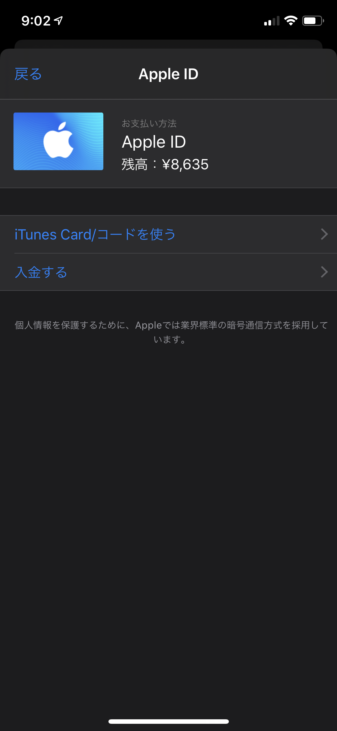 お支払い情報→アカウント情報→お支払い方法→Apple IDで支払う