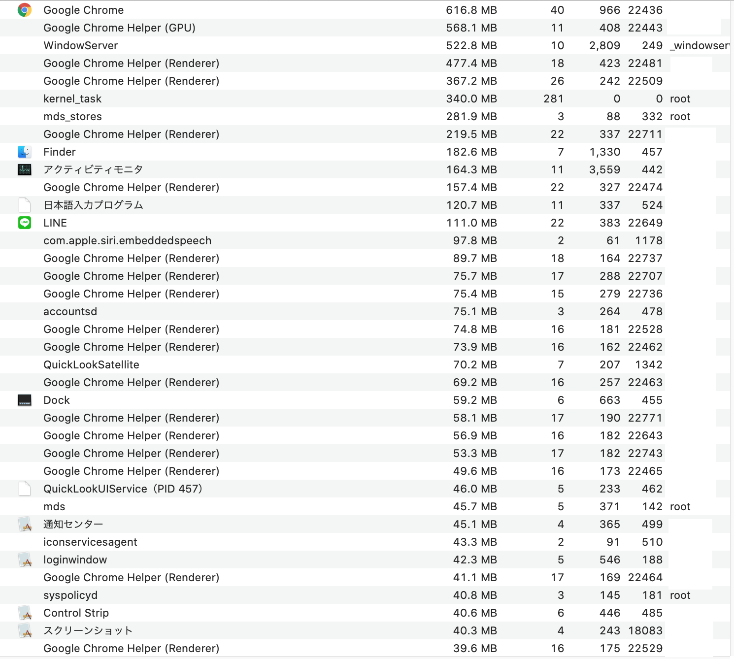 この症状が出始めた時から、メモリ使用率が異常に高くなっていることがあります。