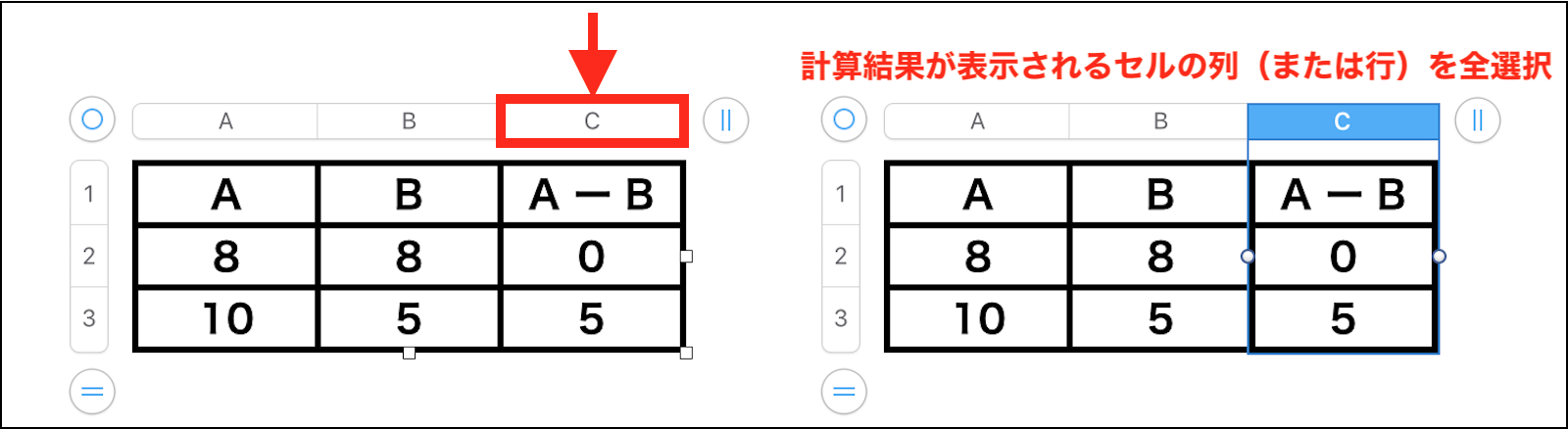 下の画像の様に、計算結果が表示されるセルの列(または行)を全選択した状態で、