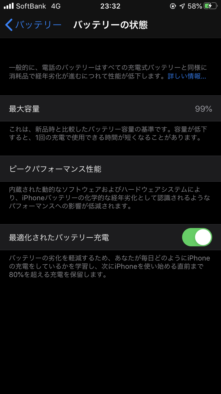 設定のバッテリーの所にある最適化されたバッテリー充電という設定があります