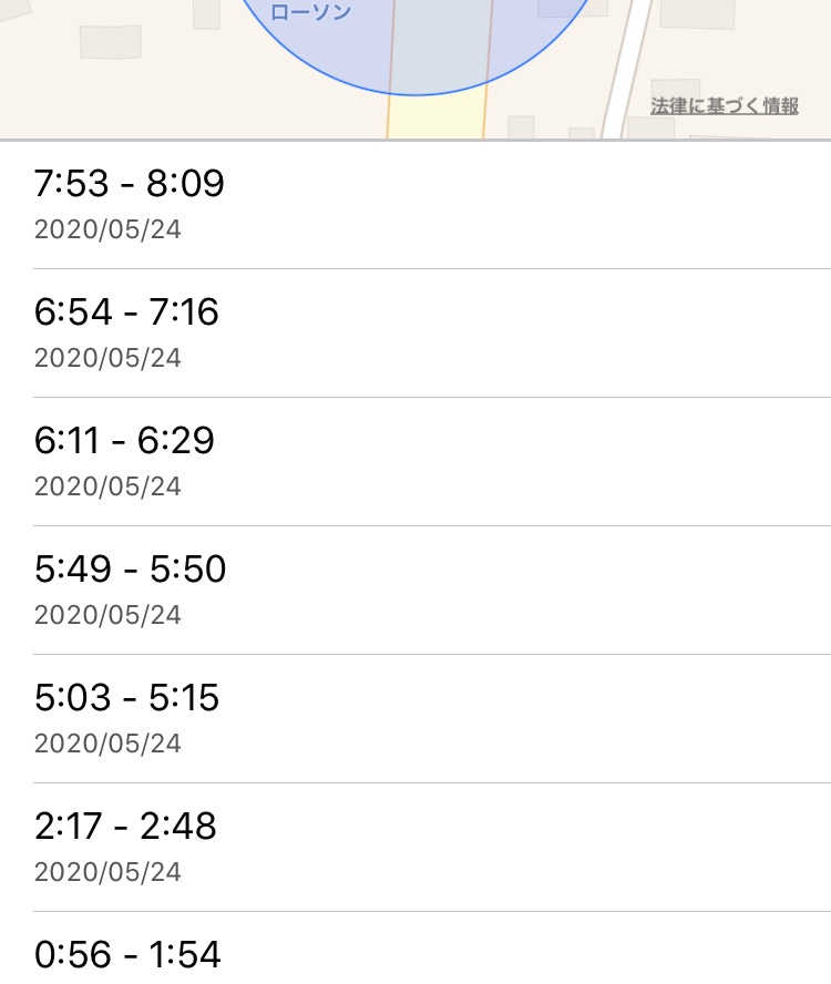 利用頻度の高い場所で、その時間に行ってないのに行った表記になってます。しかも細切れの時間になっており、到着・(車で○分)等の表記もありません。距離的には歩いて5分程度の場所です。