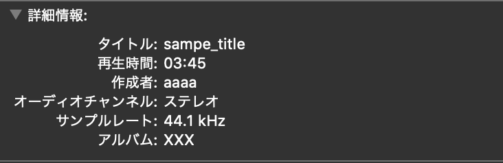 sample.mp3 sample_title 03:45 aaaa ステレオ 44.1kHz XXX ~