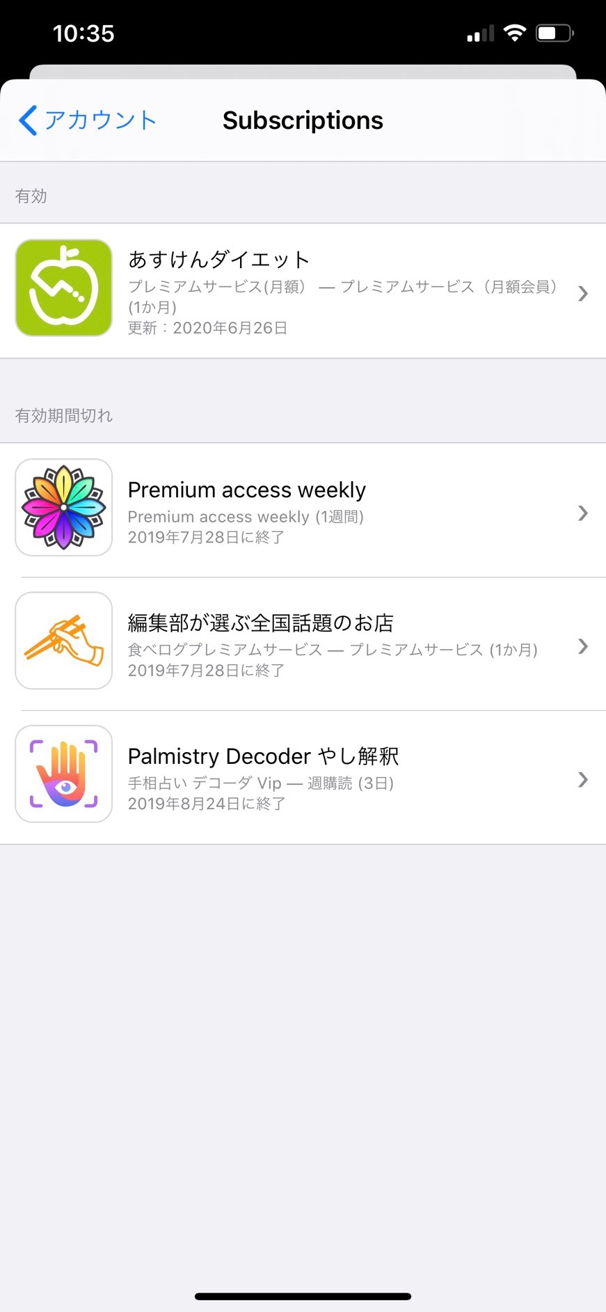 購入時メッセージで【継続は自由です。各更新日の1日前まで、「設定」>「Apple ID」からいつでもキャンセルできます。キャンセルしない限り、プランは自動更新されます。】と表示されていたので解約しようと進めていますが、サブスクリプションへは表示されておらず(購入項目には¥0-で表示されています)困っています。