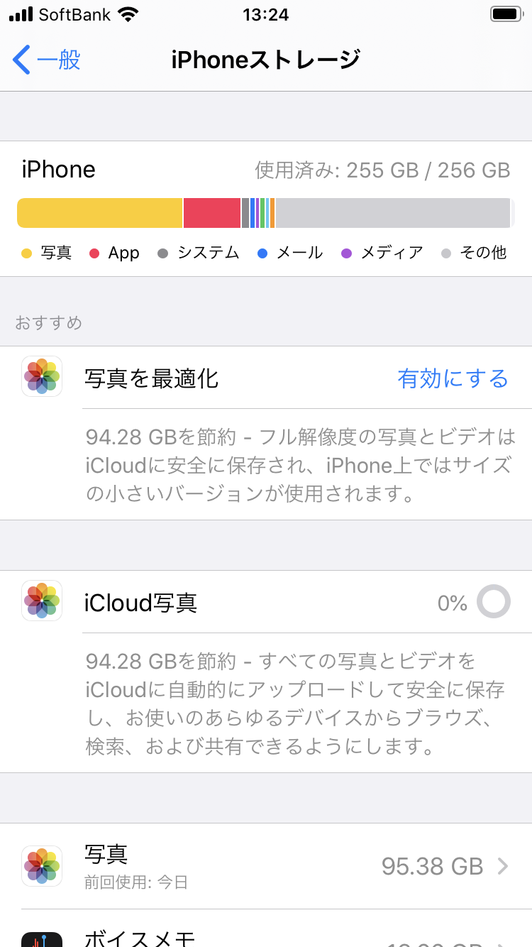 それでもiPhoneストレージがいっぱいですと出てきてしまいます。