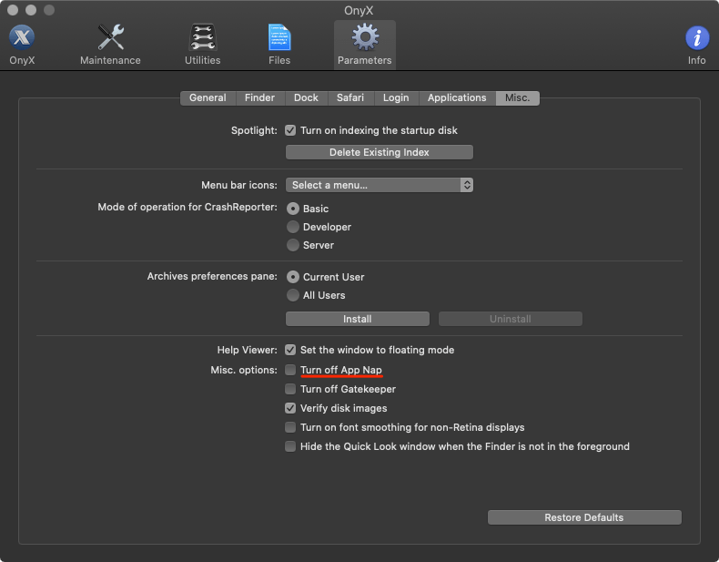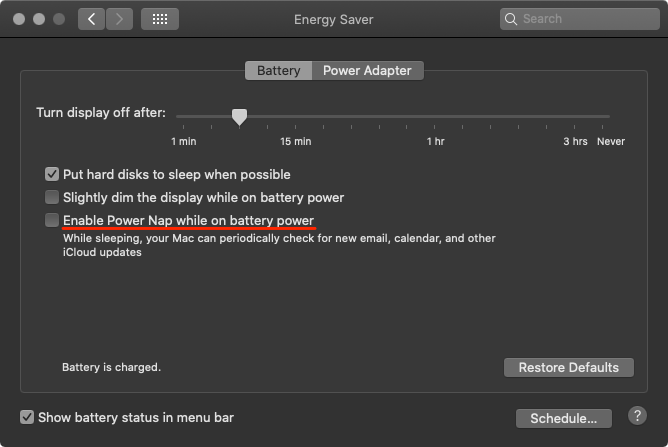 取り敢えず、これらがスリープ中も稼働することがあると仮定して、解決策を探っていきます。ただ、現時点で5回試行していますが、100%を切ったのは1度だけです。Intervalは、12時間、24時間、72時間の3パターンなので、長期間スリープしないとダメなのでしょうか?また、これが"darkwake=0"で制御できるのかどうか不明です。