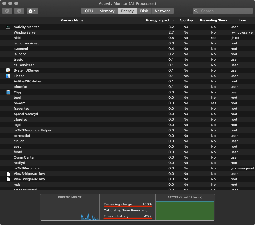 2020-07-09(木)16:14スリープ、AC外した、Wi-Fiオフ、100%、アクティビティモニタ起動させたまま。