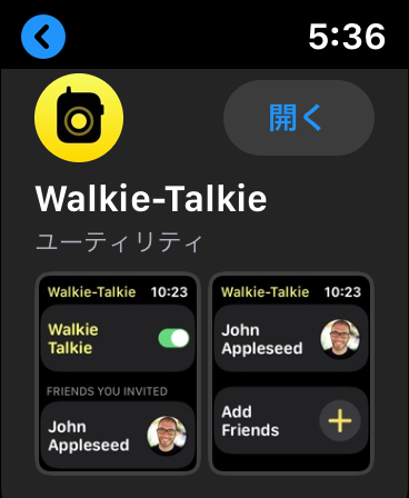 Apple Watch側のApple Storeには出てきません。音声検索→英語発音でトランシーバーと言えばいいのでしょうが、Apple Watchが日本語になっているためか、発音を認識されません。