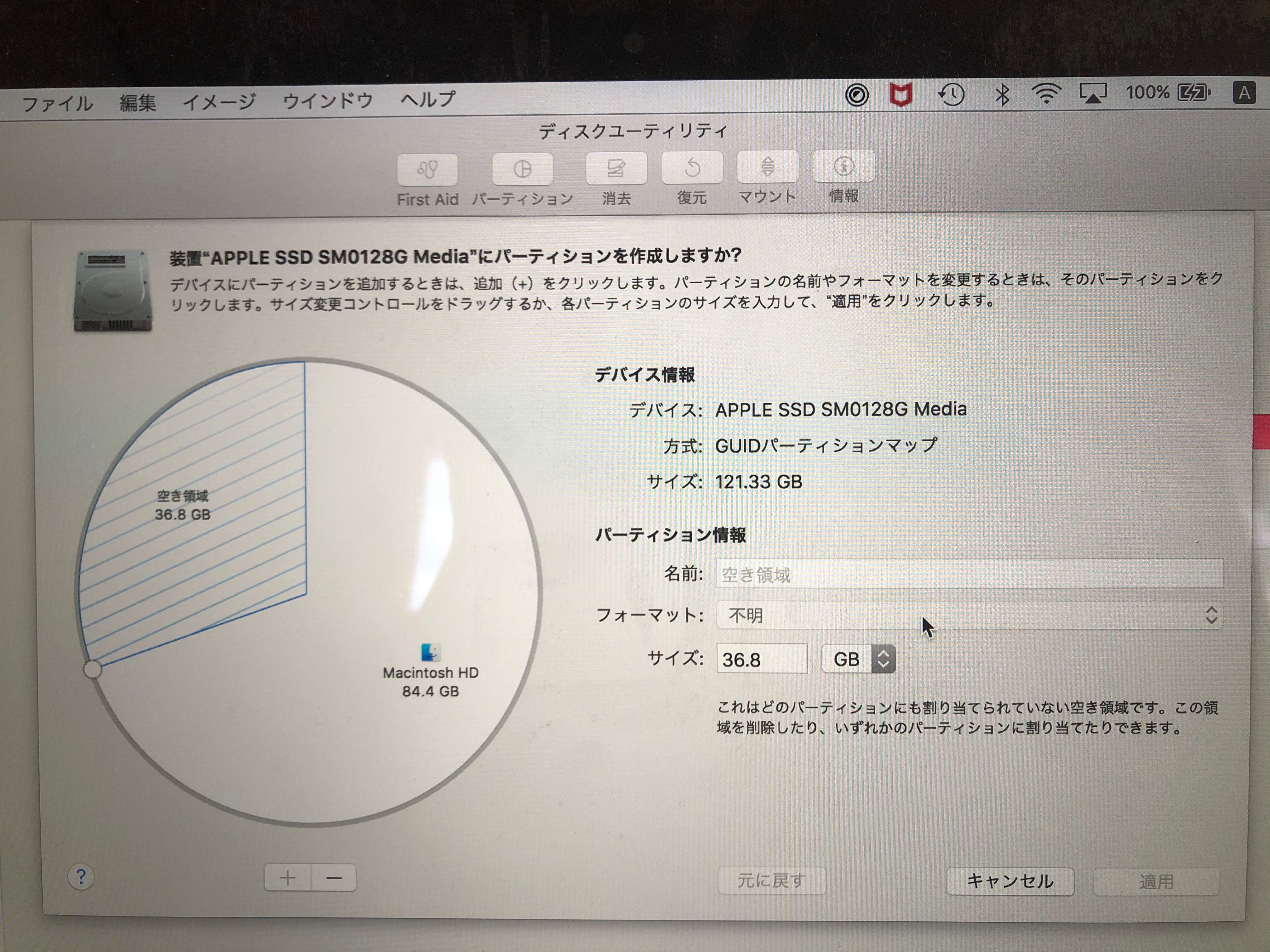空き領域部分を削除したいのですが、復元システムからFirst Aidを実行しても治すことが出来ませんでした。ご教示ください。