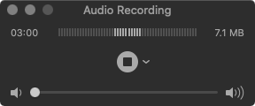 macOS 10.15.5 (19F101)、QuickTime Player Version 10.5 (1015.2.1)、Background Music 0.3.2でやってみました。7.1MBでした。