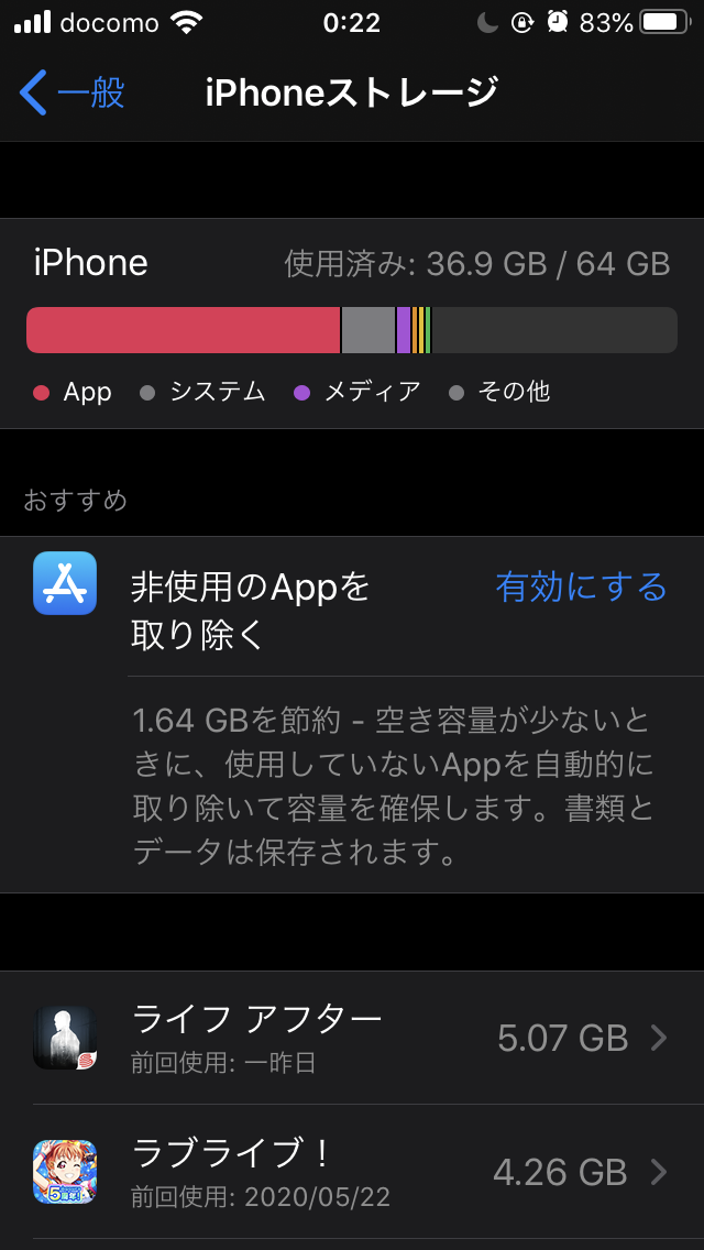 iPhoneのストレージに空きはありますか。空きがないと、再ダウンロード可能なデータは消されます。