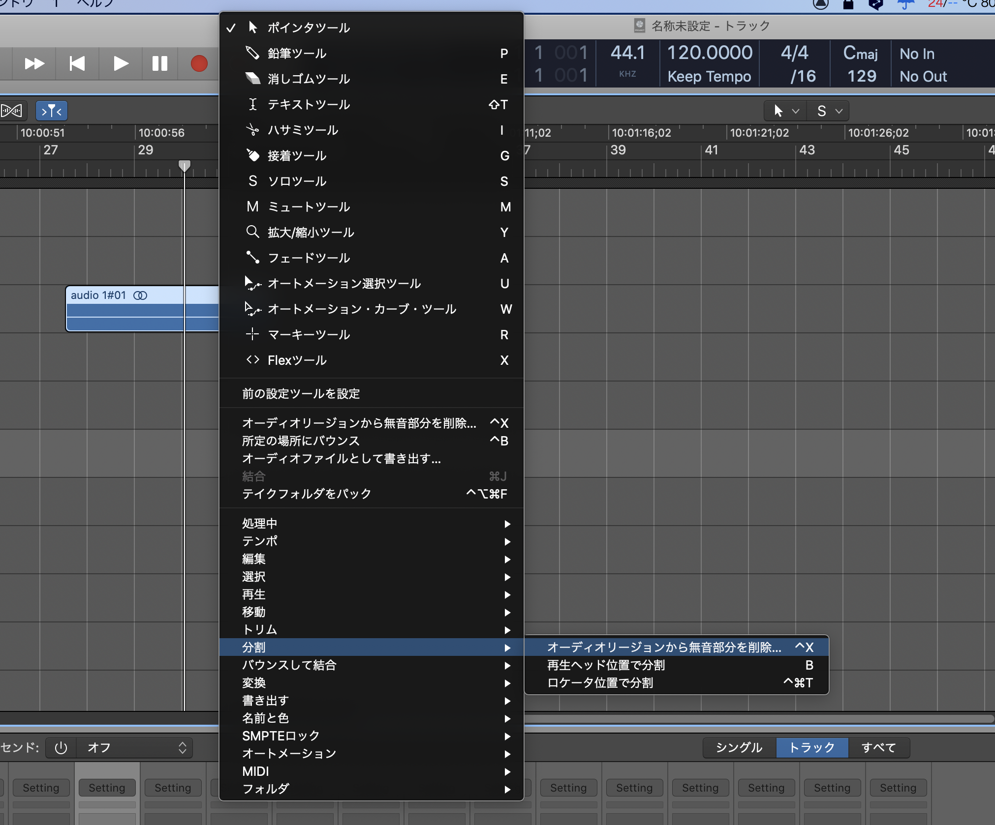 UPDしましたら、リージョンを選択して、分割の欄を覗いても、無音部分を消去というタブがありません。