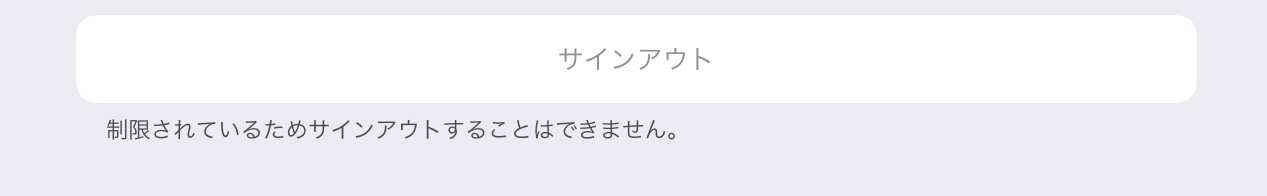 iPadからサインアウトのボタンを見るとサインアウトしたいのに「制限されているためサインアウトすることはできません」と表示されてサインアウトできない。
